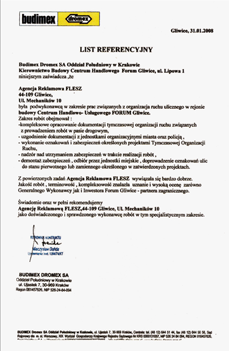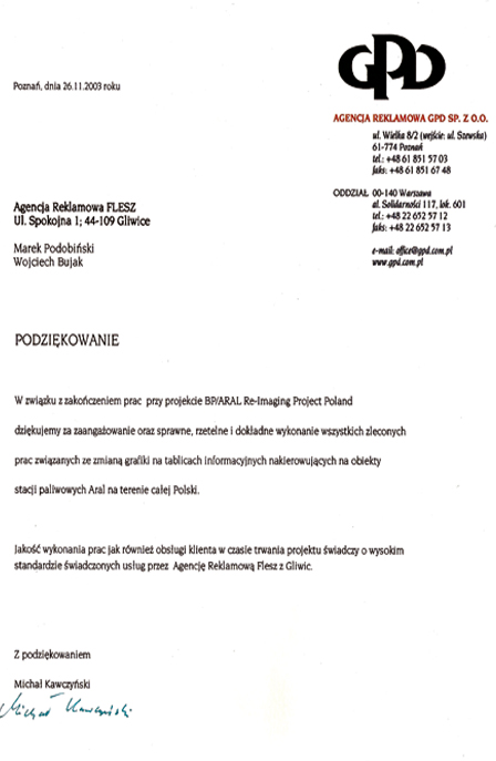 Jako wyspecjalizowana agencja reklamowa świadczymy usługi wsparte doświadczeniem w zakresie realizacji projektów szeroko pojętej reklamy wizualnej. Współuczestnictwo w wielu akcjach promocyjnych dla drobnych jak i sieciowych klientów, dało nam swobodę i pewność siebie w sprawnym realizowaniu powierzonych nam obowiązków. Duża mobilność i sprawność operacyjna przyczyniła się do sukcesu niejednej kampanii reklamowej, w której uczestniczyliśmy. Było to możliwe dzięki dużemu zaangażowaniu i zorganizowaniu przy akcjach obejmujących zasięgiem całą Polskę. Dzięki naszym wysiłkom w zakresie projektowania drogowego, poprawiliśmy znajomość oraz łatwość dostępu w terenie do obiektów naszych klientów. Prace te realizowaliśmy zawsze kompleksowo – od wizualizacji, poprzez wszystkie uzgodnienia z właściwymi urzędami po ustawienie naprowadzeń drogowych w miejscach uzgodnionych w projekcie. W tym zakresie doceniły nas już koncerny paliwowe, centra handlowe, hotele. W dziale produkcyjnym naszej firmy powstają również według zapotrzebowania oraz wytycznych klienta reklamy wielkoformatowe tzw. billboardy, kasetony podświetlane, banery. Przy realizacjach z zastosowaniem skomplikowanej grafiki współpracujemy z wieloma drukarniami z naszego regionu, przekazując klientowi produkt w wersji ostatecznej, gotowy do wykorzystania.